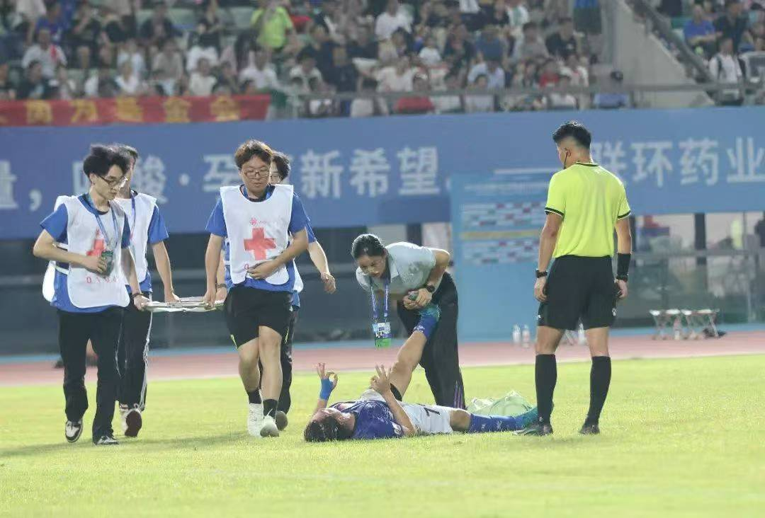 南通球员李贤成在对手受伤后主动停止进攻博爱